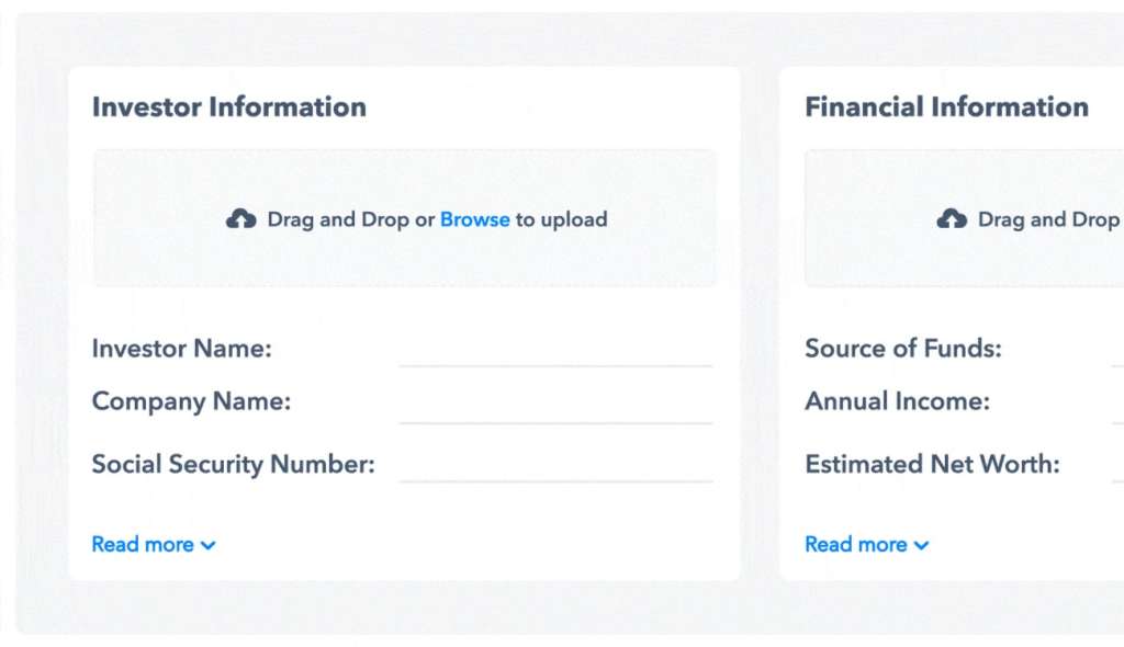 Uploaded investor documents are read through AI-driven extraction, which identifies key data fields such as names, entity types, registration numbers, and jurisdictions.